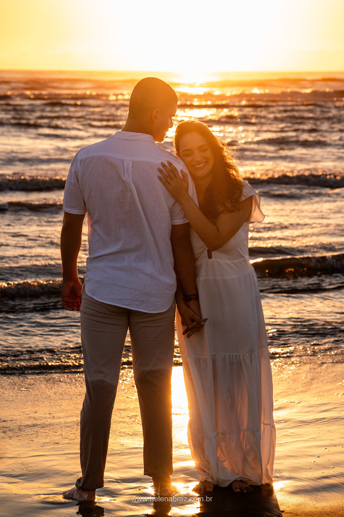 Pré casamento no nascer do sol na praia