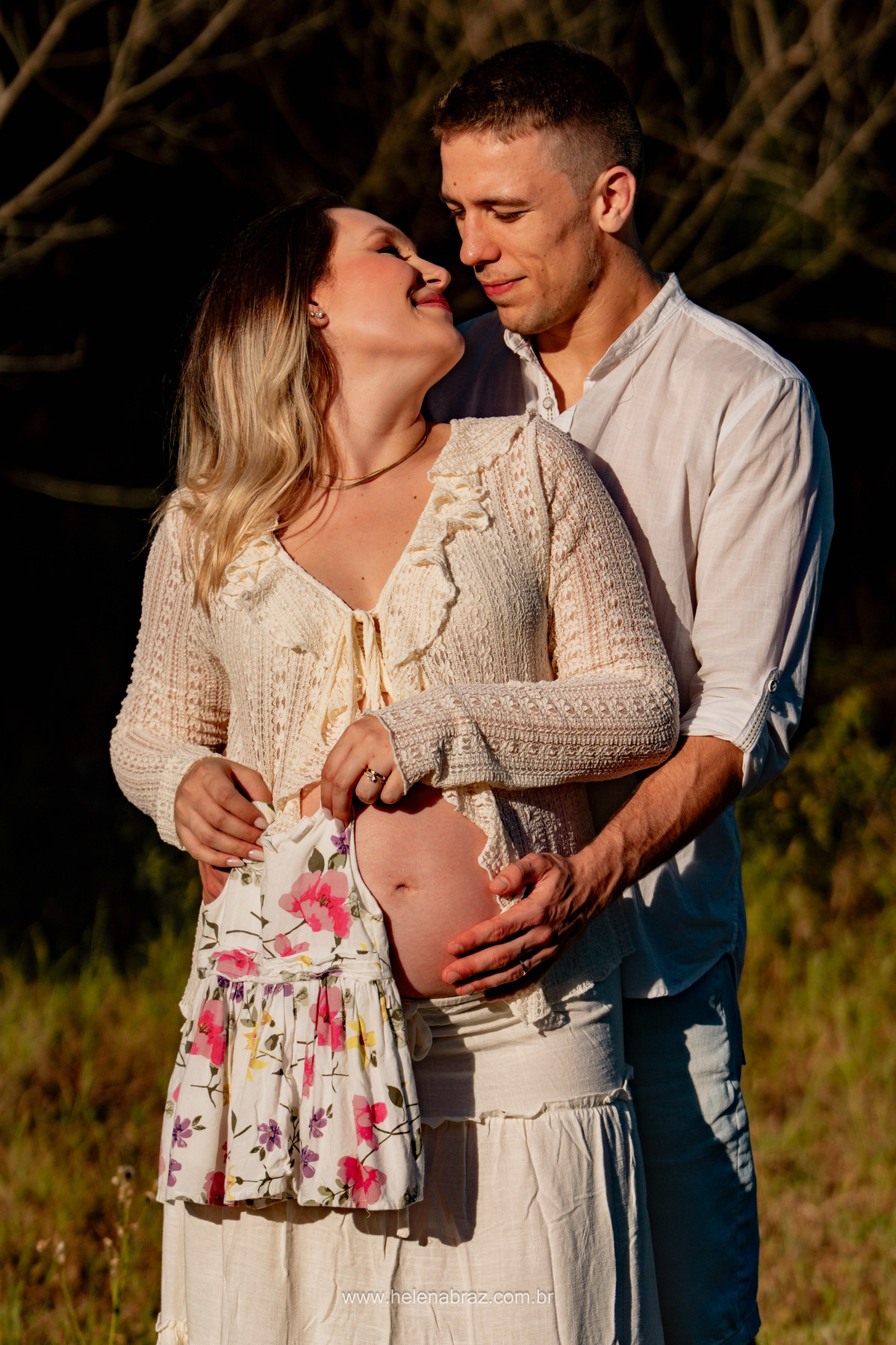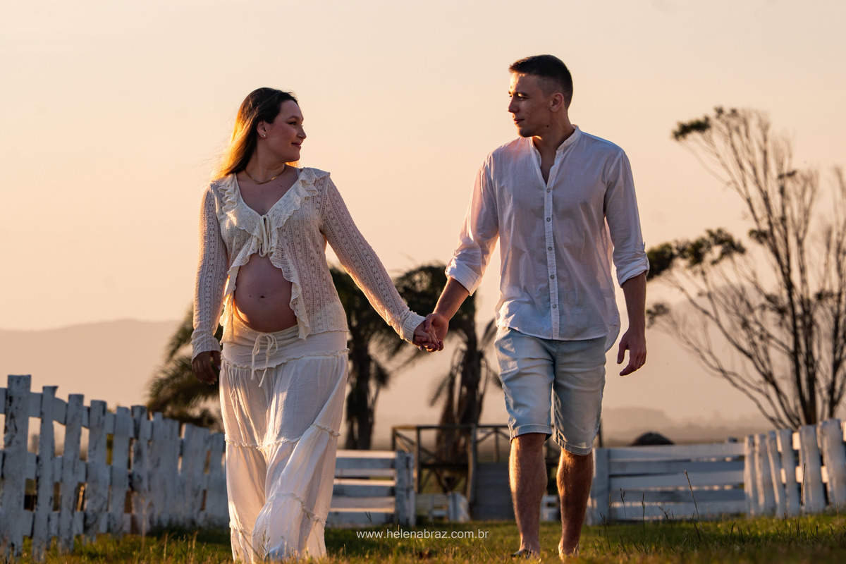 Entre o pôr do sol dourado, mãos entrelaçadas e um amor que transborda em cada olhar, a espera por você, Ana Clara, já é cheia de carinho, cuidado e promessa.